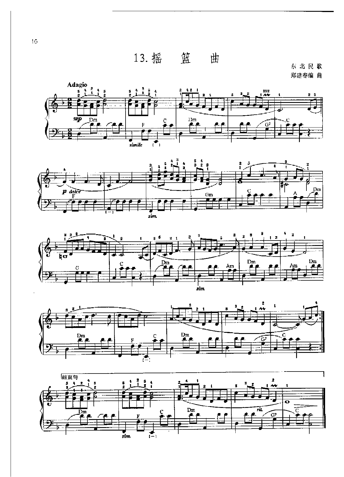 中国民歌名曲手风琴曲谱集【摇篮曲】东北民歌 郑建春编曲