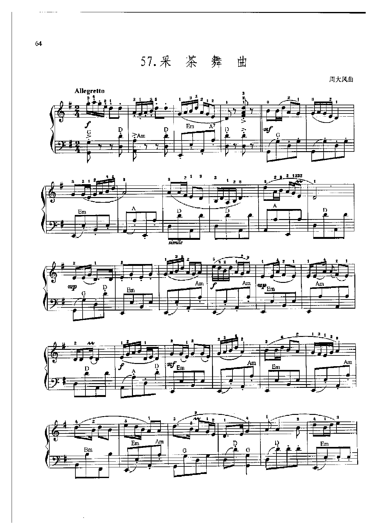 中国民歌名曲手风琴曲谱集【采茶舞曲】周大凤曲