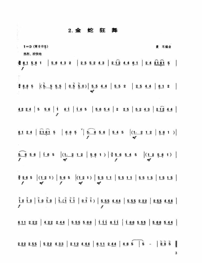唢呐独奏乐曲【金蛇狂舞】聂取编曲简谱五线谱附歌词是乐器资源网于2017年03月11日 12:34:30整理更新,内容收录在唢呐乐谱栏目;乐器资源网免费分享专业、准确、规范、高清的唢呐乐谱简谱五线谱歌词等电子版资料,欢迎在线免费下载;乐器资源网无需注册会员,即可直接免费下载各类乐器学习相关资源。