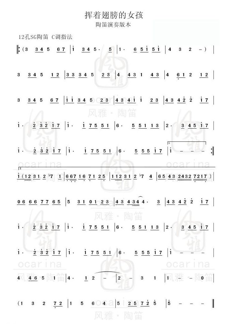 陶笛谱【挥着翅膀的女孩】简谱五线谱附歌词是乐器资源网于2017年03月06日 13:59:42整理更新,内容收录在陶笛乐谱栏目;乐器资源网免费分享专业、准确、规范、高清的陶笛乐谱简谱五线谱歌词等电子版资料,欢迎在线免费下载;乐器资源网无需注册会员,即可直接免费下载各类乐器学习相关资源。