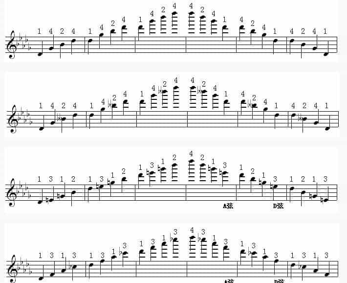 上一期我介绍了C调。这次我将介绍降D调。因把位相同、指法相同,所以同时介绍降A调和降E调一个八度的琶音。