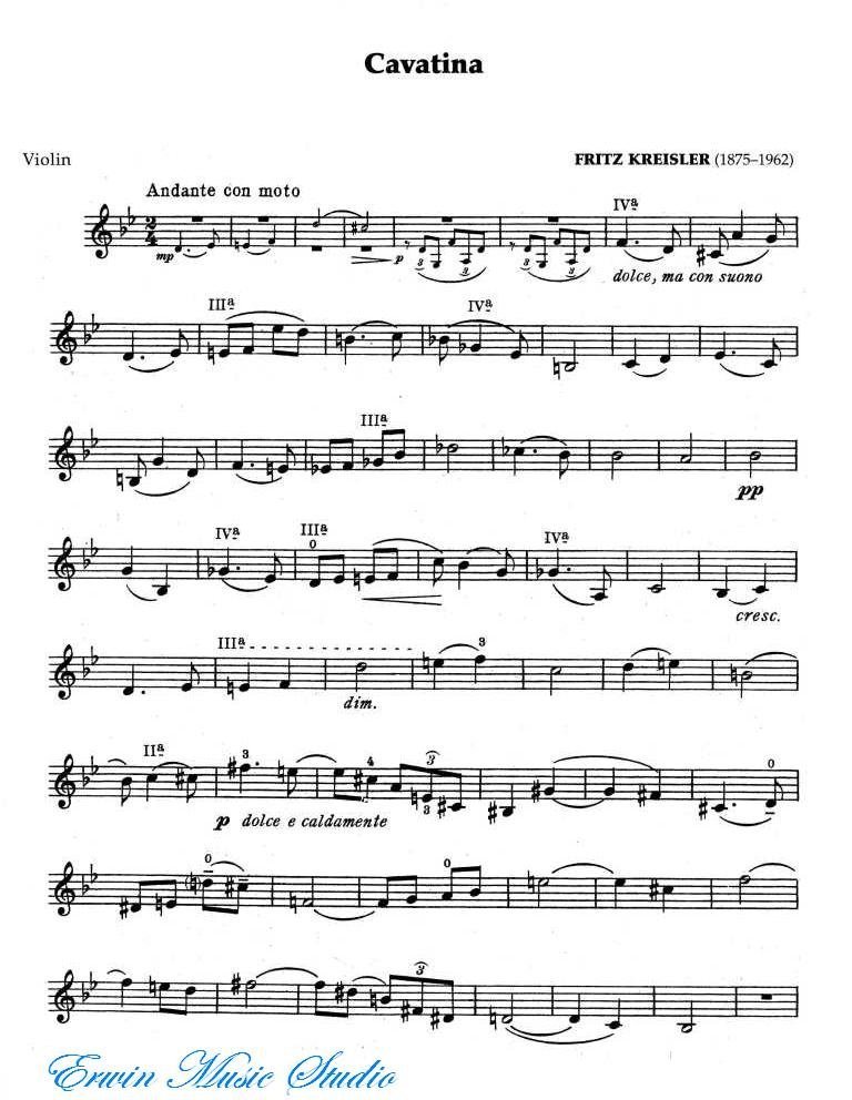 克莱斯勒-短曲 Fritz Kreisle Cavatina简谱五线谱附歌词是乐器资源网于2014年09月09日 22:48:35整理更新,内容收录在小提琴乐谱栏目;乐器资源网免费分享专业、准确、规范、高清的小提琴乐谱简谱五线谱歌词等电子版资料,欢迎在线免费下载;乐器资源网无需注册会员,即可直接免费下载各类乐器学习相关资源。