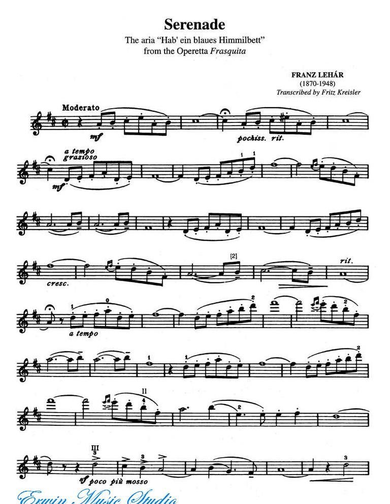 克莱斯勒-费伦茨-小夜曲 Serenade简谱五线谱附歌词是乐器资源网于2014年09月09日 22:52:29整理更新,内容收录在小提琴乐谱栏目;乐器资源网免费分享专业、准确、规范、高清的小提琴乐谱简谱五线谱歌词等电子版资料,欢迎在线免费下载;乐器资源网无需注册会员,即可直接免费下载各类乐器学习相关资源。