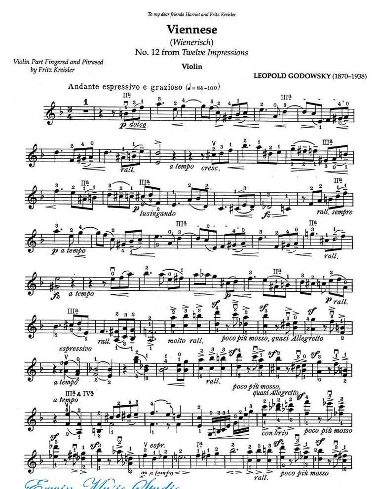 克莱斯勒-戈多夫斯基-维也纳 第12号 Fritz Kreisle, Leopold Godowsky, Viennese Wienerisch简谱五线谱附歌词是乐器资源网于2014年09月09日 22:56:31整理更新,内容收录在小提琴乐谱栏目;乐器资源网免费分享专业、准确、规范、高清的小提琴乐谱简谱五线谱歌词等电子版资料,欢迎在线免费下载;乐器资源网无需注册会员,即可直接免费下载各类乐器学习相关资源。