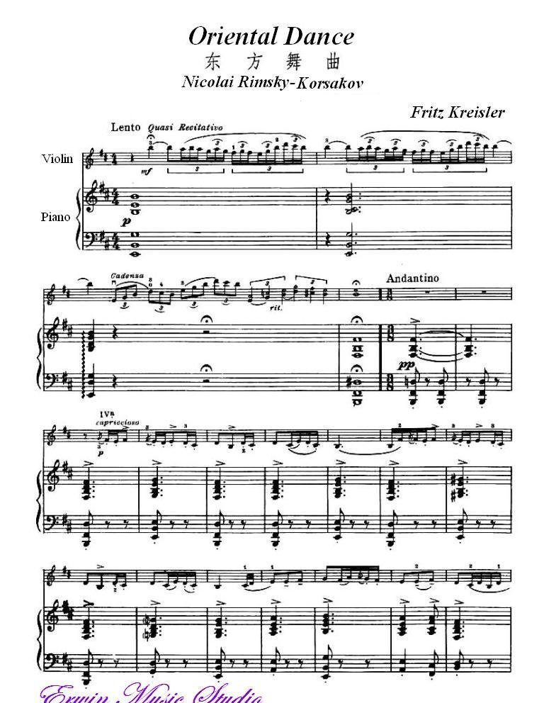 克莱斯勒-科萨科夫-东方舞曲 Fritz Kreisler, Nicolai Rimsky-korsakov, Oriental Dance简谱五线谱附歌词是乐器资源网于2014年09月09日 23:20:07整理更新,内容收录在小提琴乐谱栏目;乐器资源网免费分享专业、准确、规范、高清的小提琴乐谱简谱五线谱歌词等电子版资料,欢迎在线免费下载;乐器资源网无需注册会员,即可直接免费下载各类乐器学习相关资源。