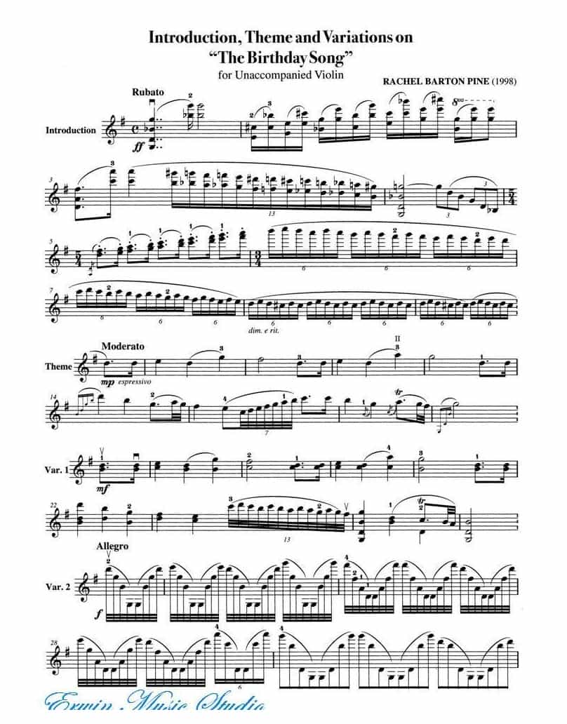 雷切·尔 巴顿松 改编 “生日快乐”主题与变奏 Ravhel Barton Pine“The Birthday Song”简谱五线谱附歌词是乐器资源网于2014年09月12日 21:47:47整理更新,内容收录在小提琴乐谱栏目;乐器资源网免费分享专业、准确、规范、高清的小提琴乐谱简谱五线谱歌词等电子版资料,欢迎在线免费下载;乐器资源网无需注册会员,即可直接免费下载各类乐器学习相关资源。