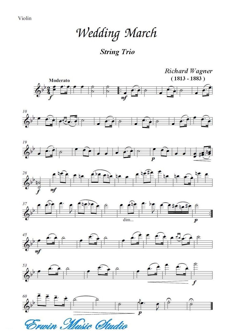 理查德 瓦格纳-婚礼进行曲Violin .Richard Wagner, Wedding March简谱五线谱附歌词是乐器资源网于2014年09月12日 21:50:44整理更新,内容收录在小提琴乐谱栏目;乐器资源网免费分享专业、准确、规范、高清的小提琴乐谱简谱五线谱歌词等电子版资料,欢迎在线免费下载;乐器资源网无需注册会员,即可直接免费下载各类乐器学习相关资源。