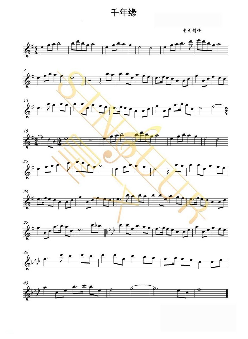 小提琴曲谱【千年缘】简谱五线谱附歌词是乐器资源网于2017年03月16日 10:18:36整理更新,内容收录在小提琴乐谱栏目;乐器资源网免费分享专业、准确、规范、高清的小提琴乐谱简谱五线谱歌词等电子版资料,欢迎在线免费下载;乐器资源网无需注册会员,即可直接免费下载各类乐器学习相关资源。