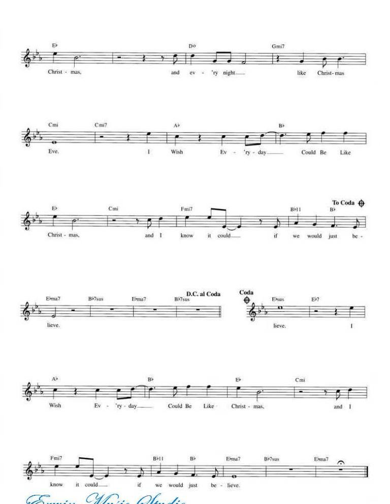 I Wish Everyday Could Be Like Christmas简谱五线谱附歌词是乐器资源网于2014年09月22日 09:50:58整理更新,内容收录在小提琴乐谱栏目;乐器资源网免费分享专业、准确、规范、高清的小提琴乐谱简谱五线谱歌词等电子版资料,欢迎在线免费下载;乐器资源网无需注册会员,即可直接免费下载各类乐器学习相关资源。