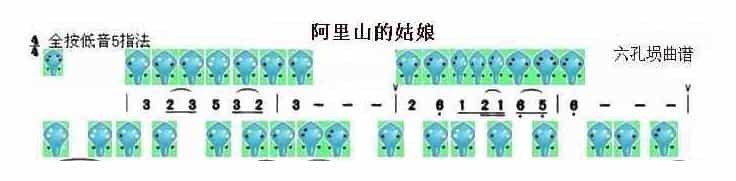 六孔埙曲谱【阿里山的姑娘】
