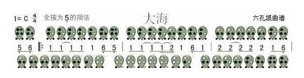 六孔埙曲谱【大海】简谱五线谱附歌词是乐器资源网于2017年03月13日 10:42:20整理更新,内容收录在陶埙乐谱栏目;乐器资源网免费分享专业、准确、规范、高清的陶埙乐谱简谱五线谱歌词等电子版资料,欢迎在线免费下载;乐器资源网无需注册会员,即可直接免费下载各类乐器学习相关资源。