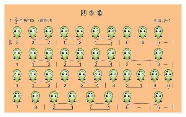 埙谱【四季歌】简谱五线谱附歌词是乐器资源网于2015年12月18日 23:29:06整理更新,内容收录在陶埙乐谱栏目;乐器资源网免费分享专业、准确、规范、高清的陶埙乐谱简谱五线谱歌词等电子版资料,欢迎在线免费下载;乐器资源网无需注册会员,即可直接免费下载各类乐器学习相关资源。