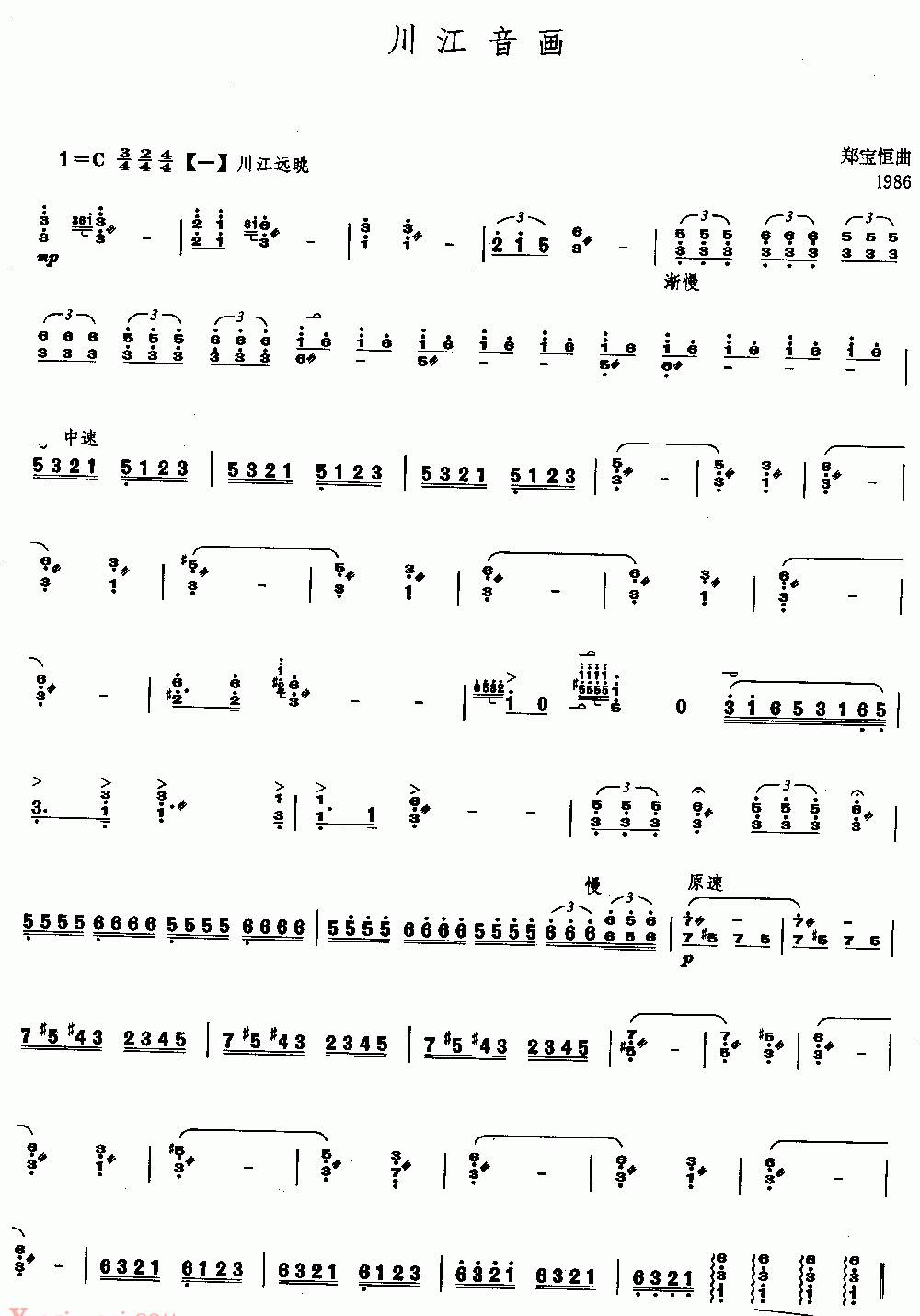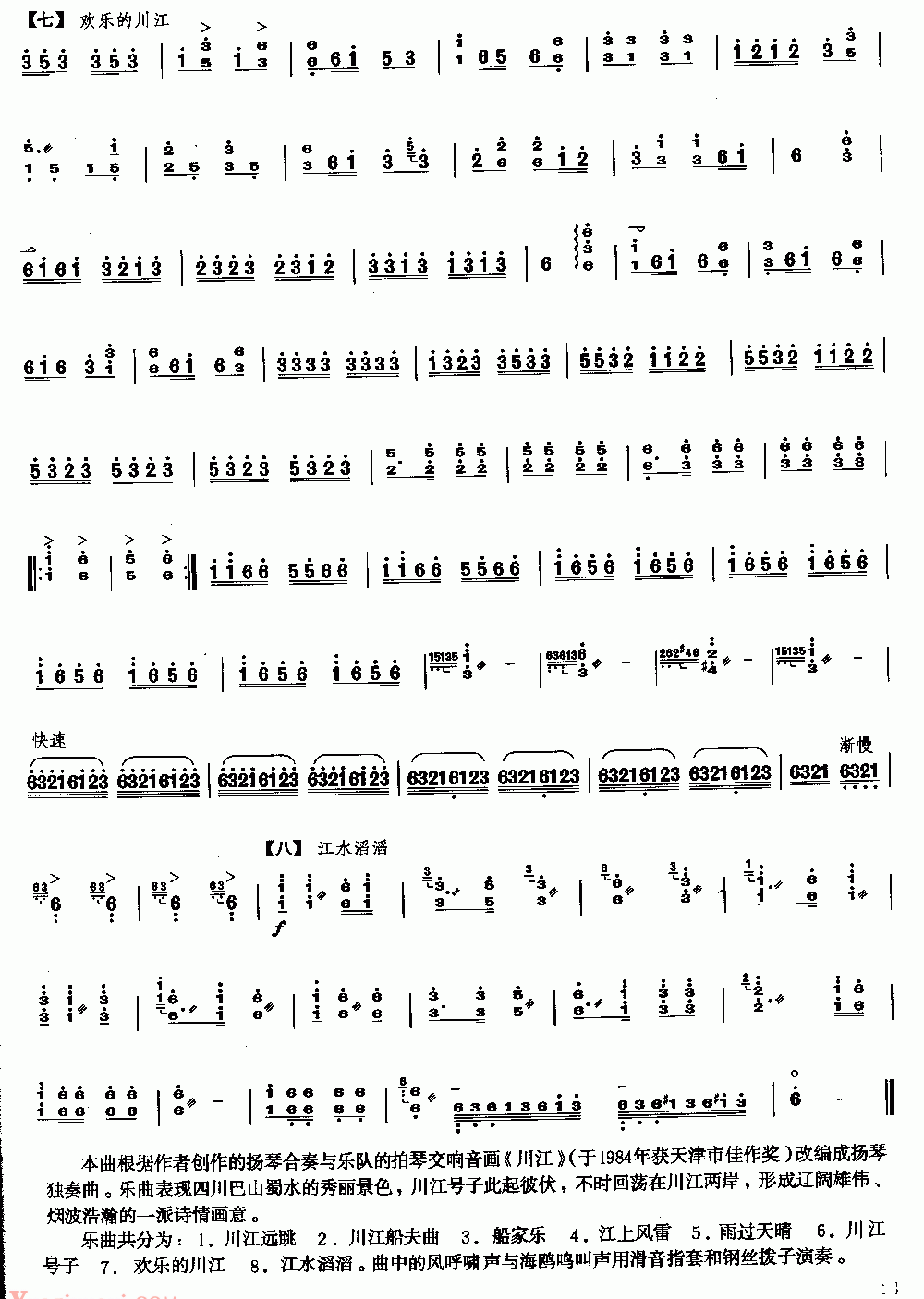 川江音画扬琴曲谱简谱五线谱附歌词是乐器资源网于2013年04月03日 16:11:22整理更新,内容收录在扬琴乐谱栏目;乐器资源网免费分享专业、准确、规范、高清的扬琴乐谱简谱五线谱歌词等电子版资料,欢迎在线免费下载;乐器资源网无需注册会员,即可直接免费下载各类乐器学习相关资源。
