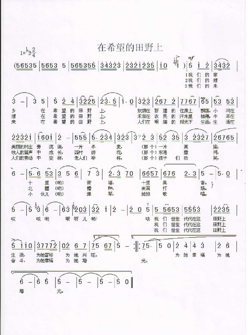 希望的田野上简谱附歌词是乐器资源网于2013年04月06日 22:30:22更新的简谱大全;收录在简谱大全栏目中;乐器资源网免费分享希望的田野上简谱五线谱图片,欢迎在线免费下载;乐器资源网无需注册会员,即可直接免费下载各类乐器相关资源。