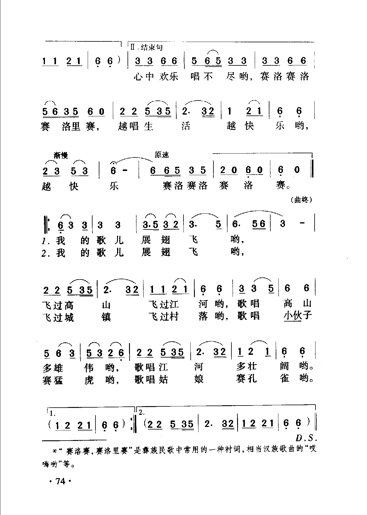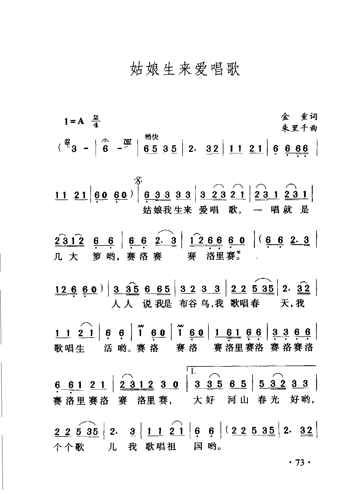 中国名歌《姑娘生来爱唱歌》歌曲简谱