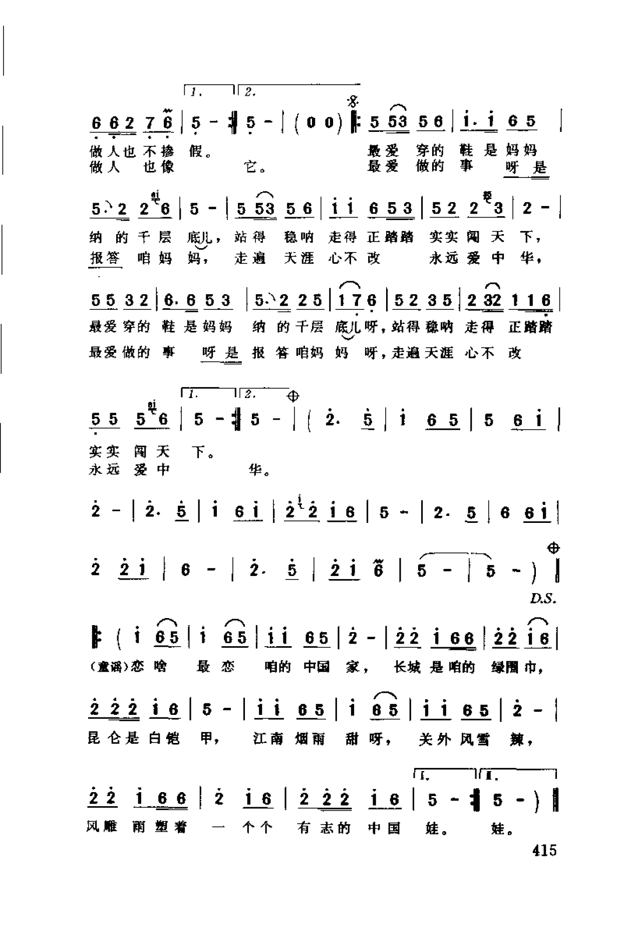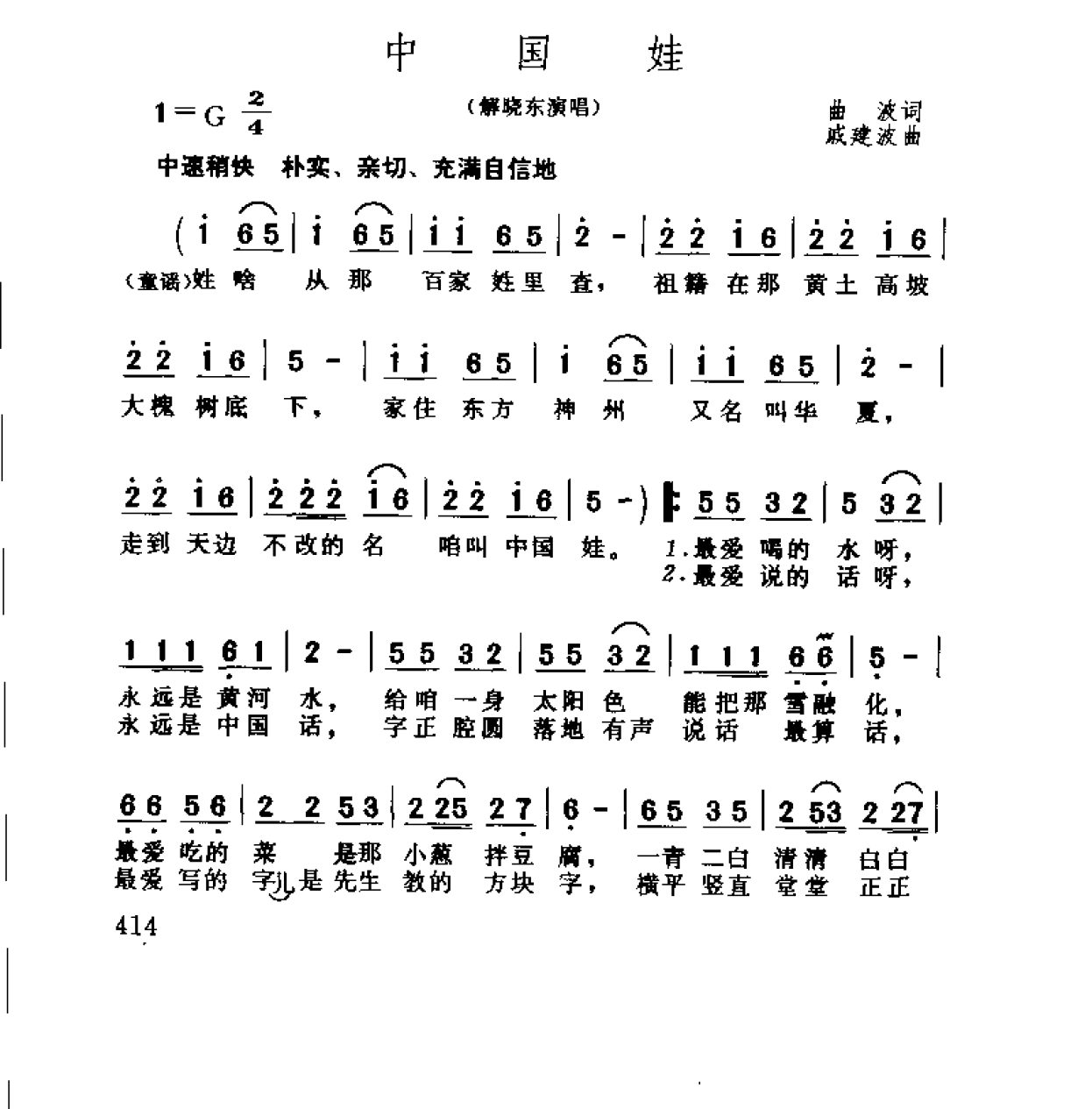 歌曲简谱:中国娃·1997曲波词 戚建波曲(解晓东演唱)