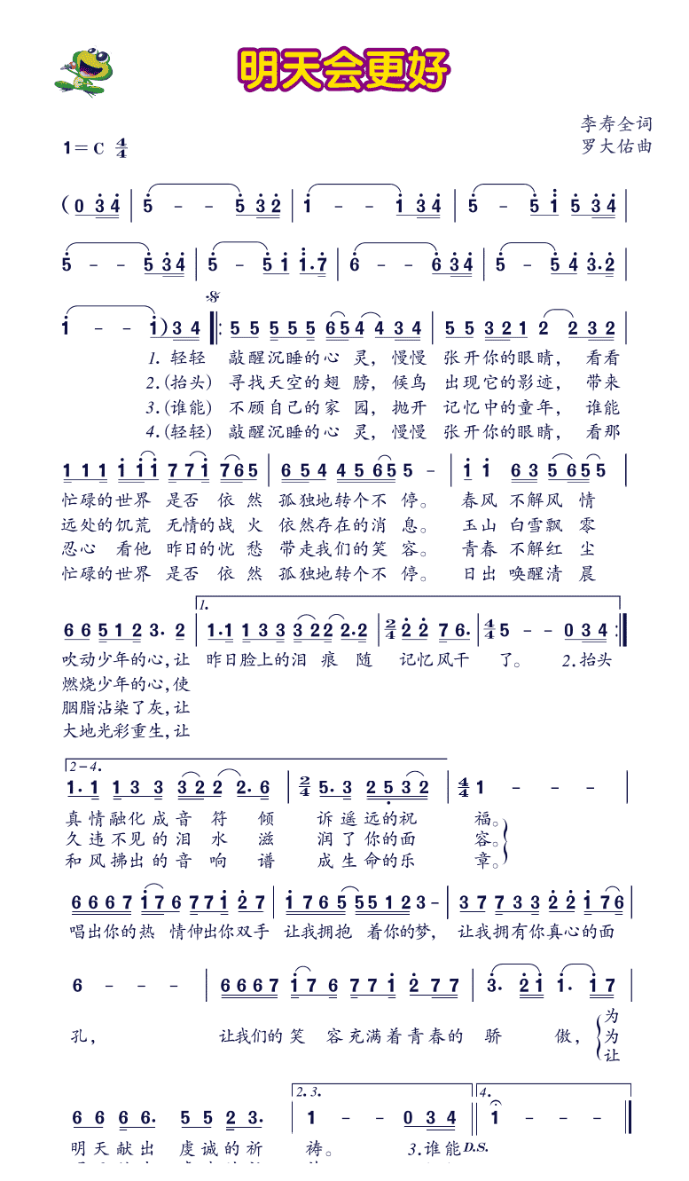 儿歌简谱【明天会更好】
