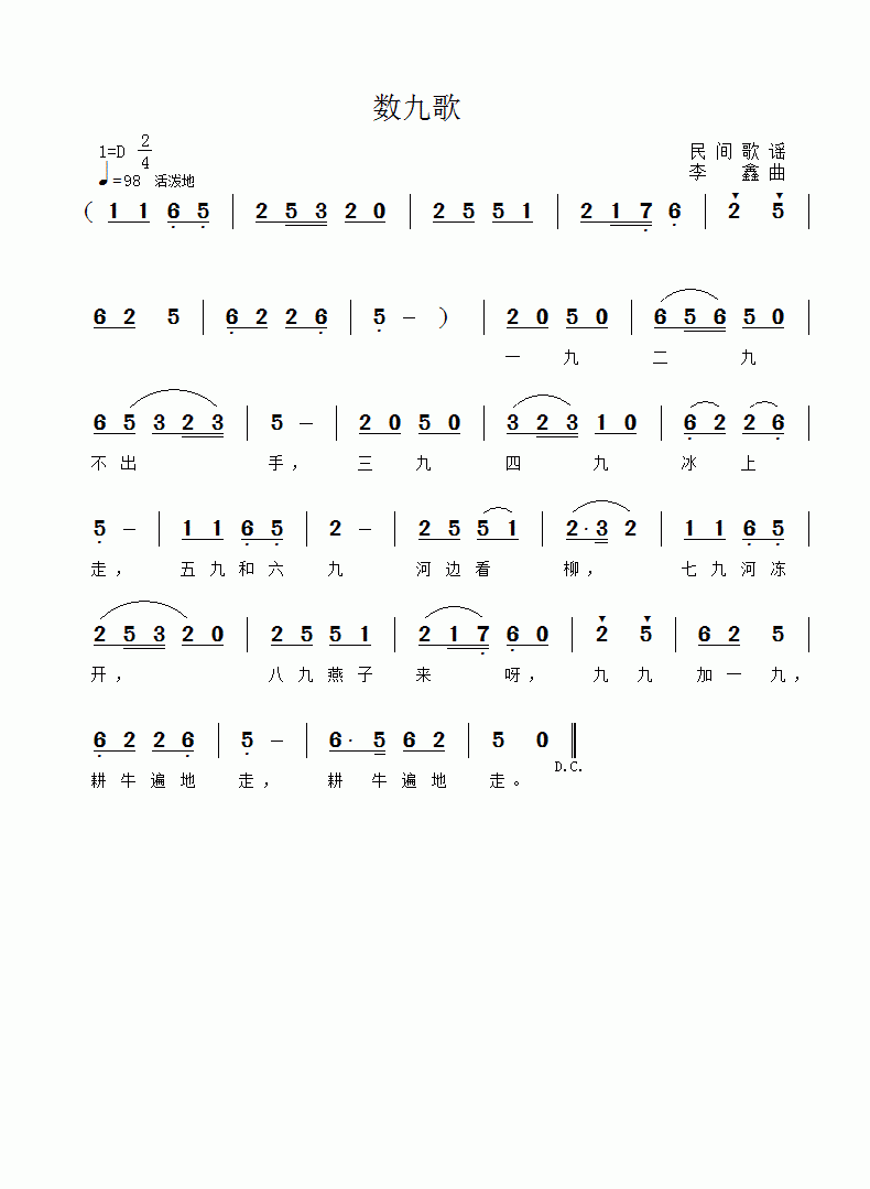 少儿歌曲简谱【数九歌】简谱附歌词是乐器资源网于2017年02月18日 01:46:38更新的少儿歌谱;收录在少儿歌谱栏目中;乐器资源网免费分享少儿歌曲简谱【数九歌】简谱五线谱图片,欢迎在线免费下载;乐器资源网无需注册会员,即可直接免费下载各类乐器相关资源。