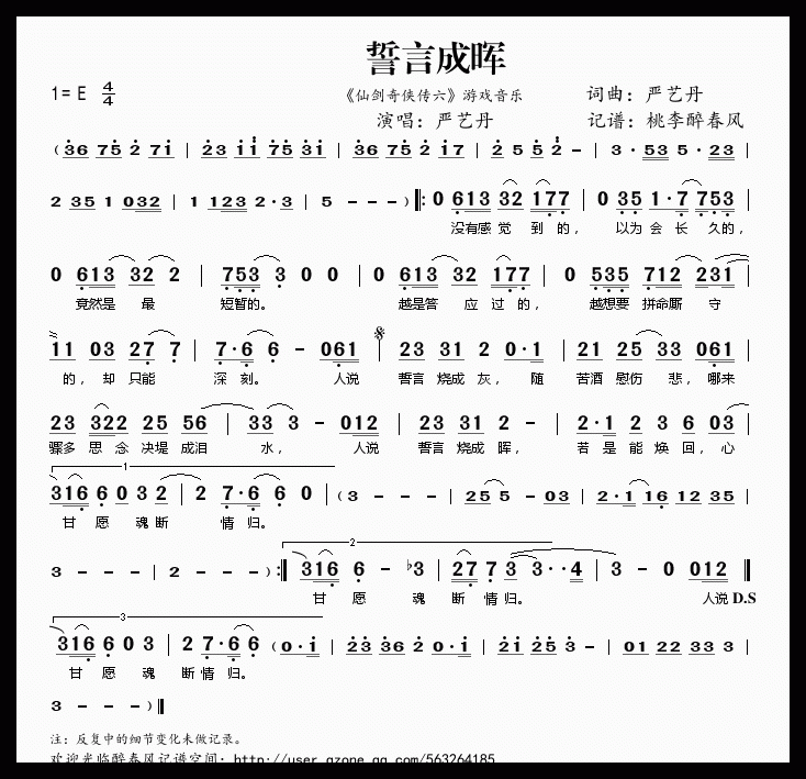 简谱【誓言成晖】严艺丹 演唱